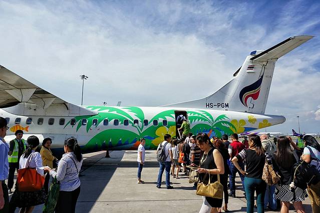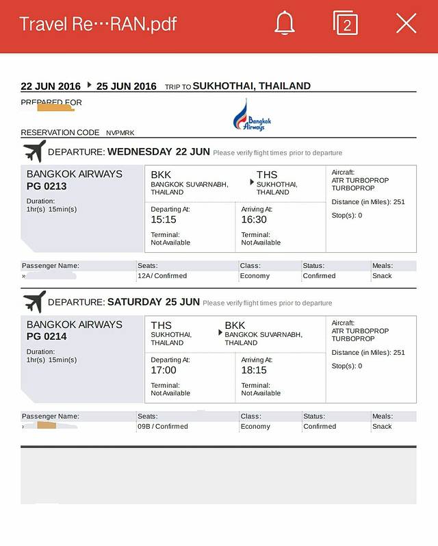 从曼谷飞素可泰一天有两班飞机,一班上午一班下午,都是Bangkok airways经营的,起降都在素万那普机场。机票应该不难买,价格也很稳定(毕竟垄断),大约400元左右(单程),我也是到达泰国以后才在skyscanner上查询,直接跳转到bangkok airways上购买的。