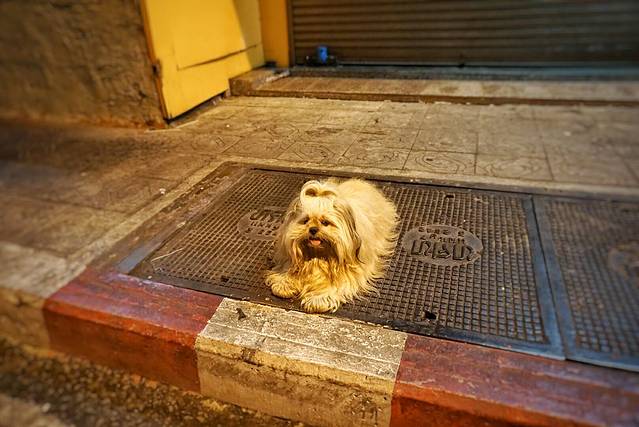 德莫克酒店旁小卖铺的狗狗,一只把毛毛摊在下水井盖上的马尔济斯犬~和我们家汪长得好像,太可爱惹~