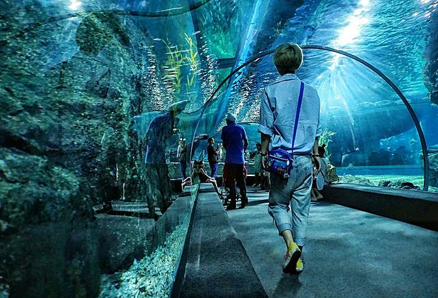 进去之前没抱太大期待,但没想到却超越期待。海洋世界里分为热带海洋,雨林区等,还有最吸引人的海底隧道和企鹅区~又上而下游览,会发现同一片区域会随着你所处的位置不同而呈现完全不同的效果,远中近观察各种水生动物...