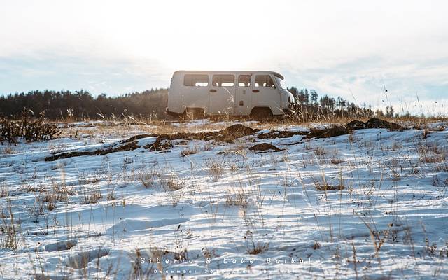 路上遇上大雪,能见度不高,但车内相当的暖和。在大雪中就我们一辆车孤零零的驶向荒野深处,这才是我要的西伯利亚的感觉。