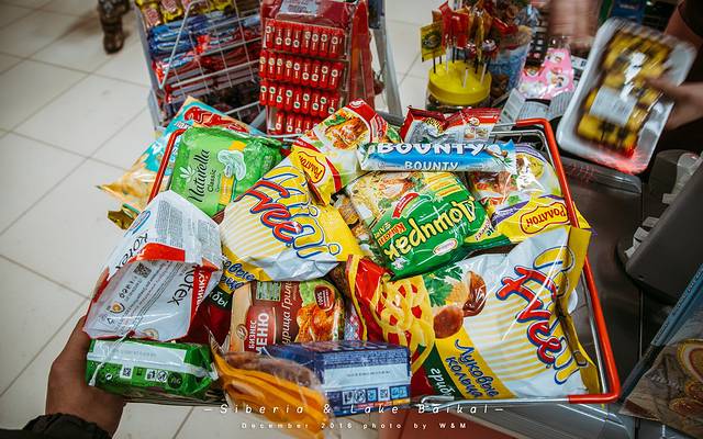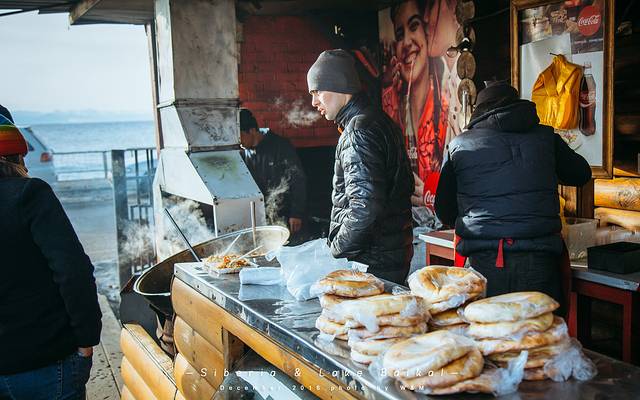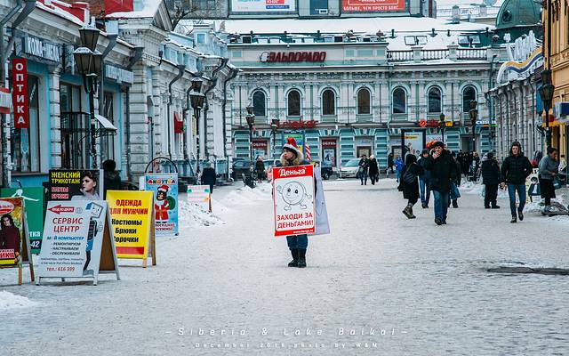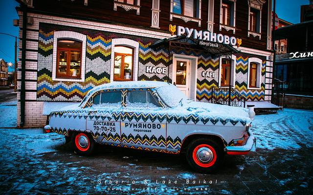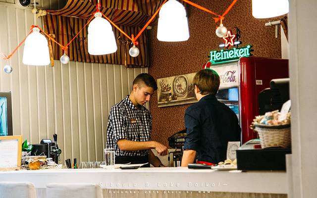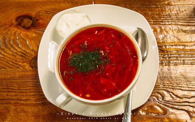 在伊尔库茨克,外出吃饭时个大问题,冬天大门都关这,从外面看不太容易分辨是不是餐厅,还都是俄文招牌。名气大的餐厅有英文,个别也有中文的指示和菜单。但要想找当地味道的餐厅,真的很困难的事情。尤其是到了下午4、5点天都黑了,我们按照LP上指示的一个素食餐厅,用百度地图一路找过去,居然关门。。。。。