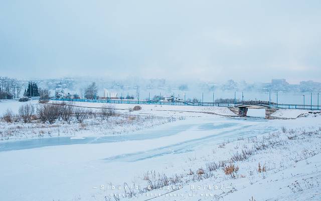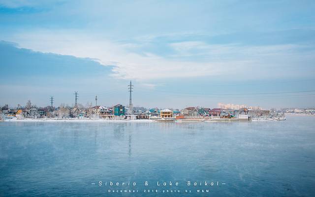 12月的安加拉河面已经完全冰封,太阳才刚刚出地平线,整个河面透出微微的蓝色,远处河面上飘着一层氤氲的蒸汽。