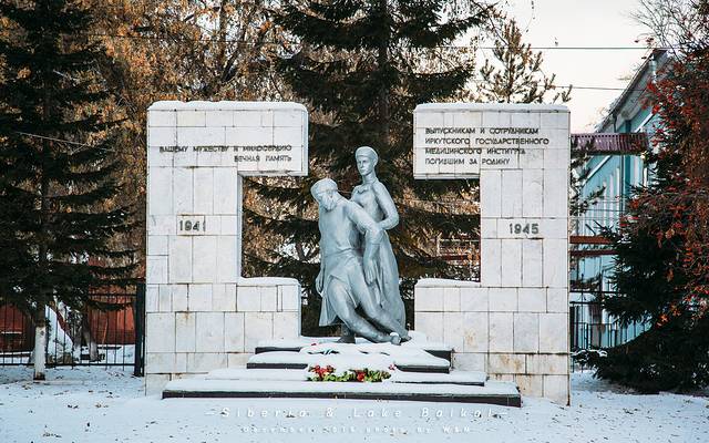 130街区怪兽雕像那往西一直走,可以一直通到安加拉河边。伊尔库茨克到处可以见到这种苏联时代留下的,这种很有革命情怀的雕像,虽然不知道纪念的是谁,看造型应该是有段凄美的爱情故事。
