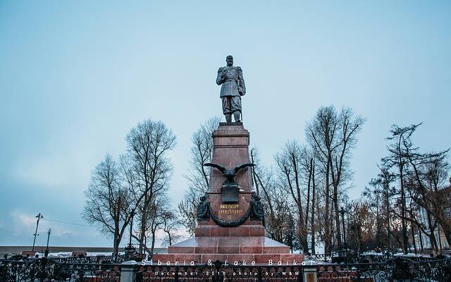 沙皇亚历山大三世雕像,就矗立在安加拉河畔。沙皇亚历山大三世是唯一一位曾经到访过西伯利亚的沙皇,雕像的姿势好像拿着一个看不见的,拴在绳子上的气球。