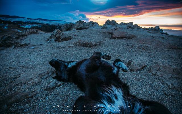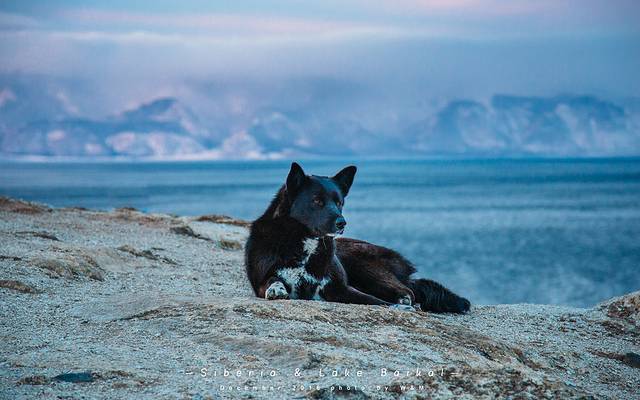 汉酒店有两只汪,一只大黑、一只大黄。对人很友好,天天守在餐厅门口等游客喂。大黄很贪吃,也很会欺负大黑。但是大黑似乎更有灵性。这就是大黑,那天有两个中国妹纸独自来萨满石,大黑一路带路加护送,把她俩领到萨满石来。妹纸们去拍照,他一个人趴在萨满石的顶上,像一位萨满巫师,傲视着远方。