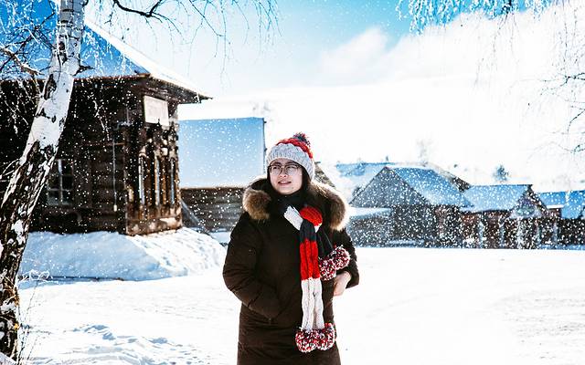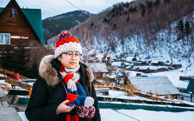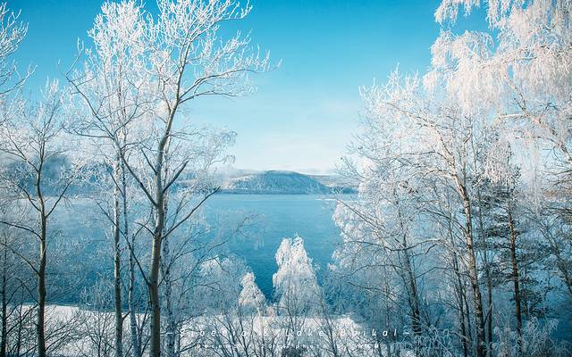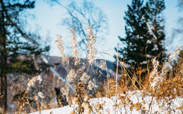 整个村子坐落在安加拉河畔,上午赶早来树上全是讨人喜欢的雾凇。微风吹动,树上的冰晶散落在空中,在阳光下像一颗颗闪耀的钻石。