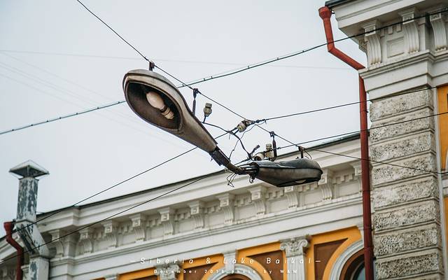 伊尔库茨克很多路灯都这样用铁丝在空中悬着。