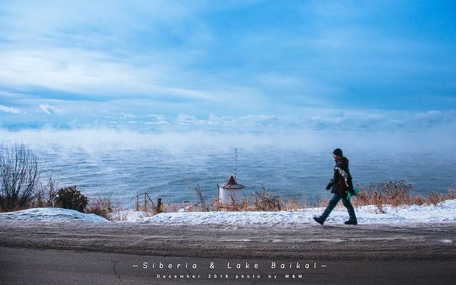 上午10点乘车返回伊尔库茨克,途经安加拉河口,河口水面上一层厚厚的蒸汽,这可是零下20度啊~~~