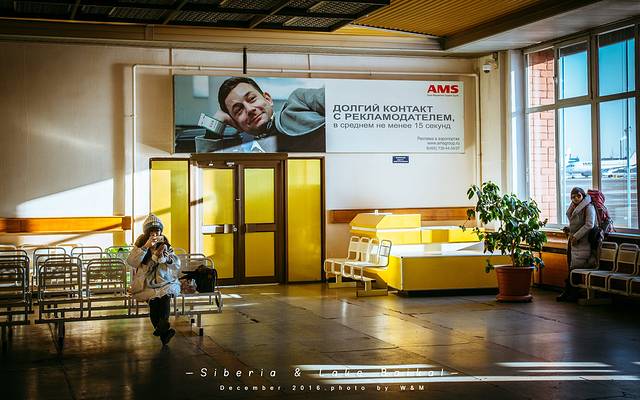 国际机场是以前一个军用机场改造的,很小很简单。国际机场隔壁就是伊尔库茨克国内航班的机场,那就豪华多了。我们回去的时候是晚上,可惜没机会拍下来。