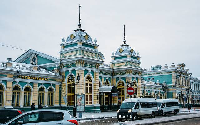 伊尔库茨克火车站,坐落在河的西岸,造型和色彩都很醒目。