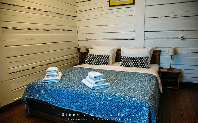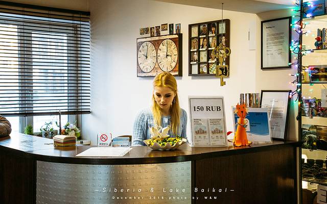 订房:都是在BOOKing上订的,伊尔库茨克主要住130街区,利斯特维扬卡住木屋、奥尔洪岛住汉酒店,基本房价在300-500人民币/晚之间。而且12月是淡季,除了岛上,伊尔库和利镇基本上是享受别墅待遇,而且酒店的暖气都很厉害,室内基本只穿的住短袖,天天热的死。房费都是到店支付,伊尔库的酒店都可以VISA刷卡;利斯特维扬卡住木屋要现金;奥尔洪岛上的汉酒店也可刷卡,岛上其他酒店很多是现金。