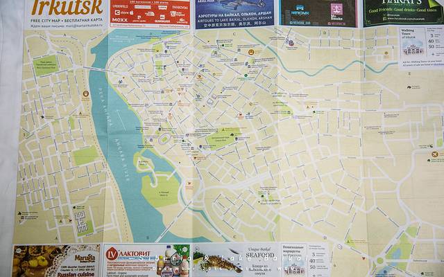 几乎每个酒店都有这样的伊尔库茨克地图,可以免费索取。今天徒步的重点是,基洛夫广场周边,还有安加拉河西岸。