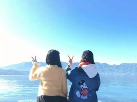 环游泸沽湖的方法我们想过很多,最终选择拼车50一个人。因为一路上都是盘山路,我是不会骑电动,我的同伴也是半吊子,安全起见我们选择了拼车,也玩得很开心的。我们是走到小落水码头边上的客栈拼车的,本来是要租他们家的小电动,但是客栈老板看我们是两个妹子就直接说我们hold不住,建议我们去拼车玩,于是就这样拼了~