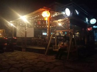 因为觉得白天这个客栈老板特别好,客栈的布局我也很喜欢,于是我们晚上就去他们那边喝酒聊天了,这个也是行程之外的。开玩没多久,旁边一桌的两个男游客想跟我们一起拼玩,于是就这样一起玩咯。大概到了十一点了吧,我同伴还是想看流星,因为前一晚去划船了都没看到,于是我们商量着去小码头的沙石上看看星星,这个是时候,跟我们拼玩的两个男生也走了(就称男a,男b吧),这两个男生是跟团来的,我觉得我们有必要分享一下泸沽湖的星空给更多人,于是邀请他们来看星空(当时加了微信),于是我们四个人一起看着星空,聊着天,其实大家都不懂星星天文,可是我们依旧热情满满的望着星空,当我们躺下的时候,就感觉整个星空只属于我们,只有我们。虽然我们冻成狗,但是依旧没有想回客栈的想法,因为这星空我们恋恋不舍。。。
