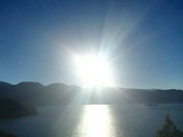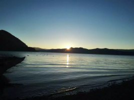 泸沽湖天亮的晚,日出时间到了八点多,我们的客栈里小落水码头步行5分钟就到了,所以我们是赖床起来赶日出的。在泸沽湖,太阳没出来之前超级冷,要穿羽绒服,太阳出来那一瞬间,超热,可以穿薄一点的衣服了。拍照。哈哈~