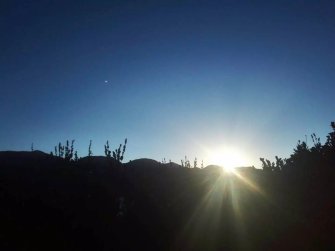 太阳的照射下,山也变红了