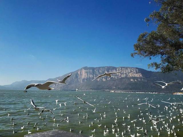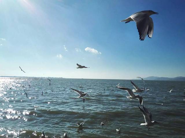 到了没走几步就可以看到滇池了,很多海鸥,不过需要抓拍。