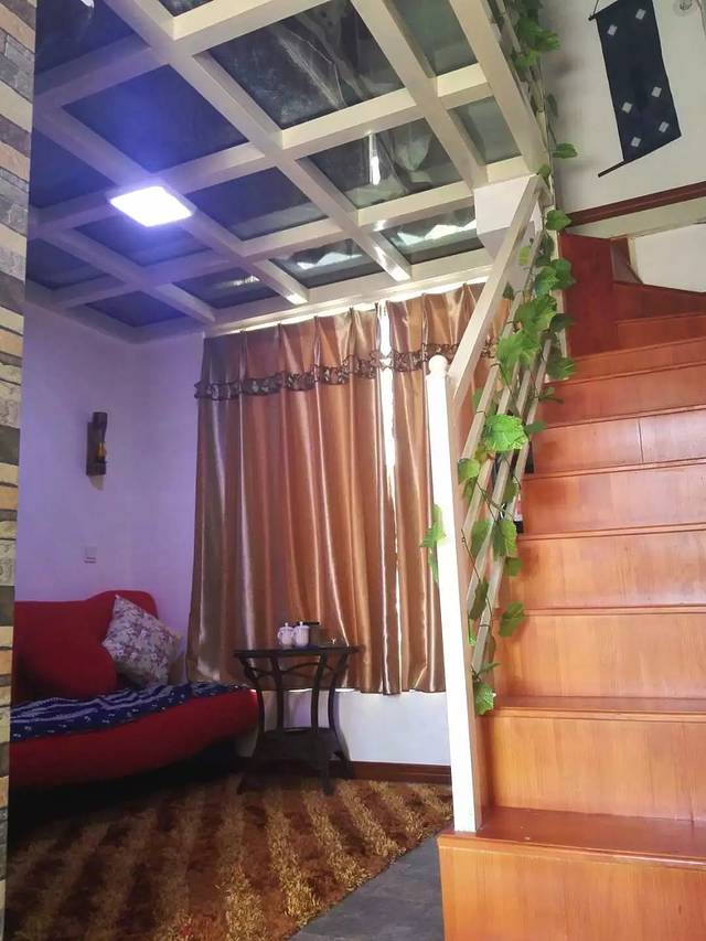 我们的客栈住的是小套间,很有情调,适合情侣居住,第一楼是小客厅洗手间,第二层就是榻榻米。