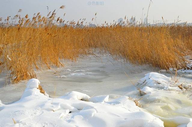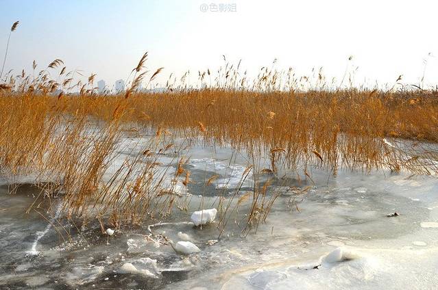 零下二十的温度,地面上的水都结成了冰,晶莹剔透,覆盖上面的雪也是硬硬的,白白的,在白雪的映衬下,冬天的枯草越显金黄,这是在南方的城市看不到的景色。