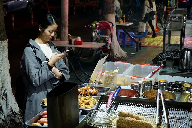 麻辣烫的移动餐车,撸串串儿也是不错的体验哦,街头巷尾的小吃,往往就是这个城市最经典的美食,没有排场、只有味道。