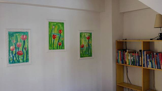 这是公共区域,一个书架上摆了好多书,你以为是什么书?我看了一下,是小学中学的课本辅导书什么的,没有什么文艺的书,所以看看就算了,就当装饰好了。