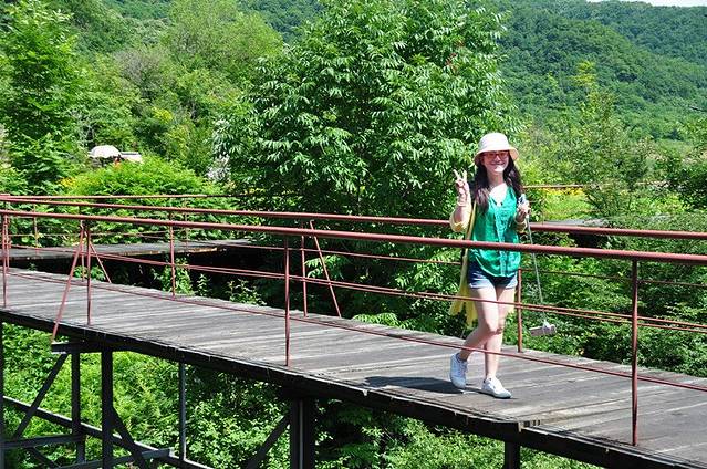 天桥沟森林公园位于辽宁省宽甸满族自治县西北部,距宽甸县城59公里,距丹东市159公里,距沈阳市220公里,西与本溪县毗邻,北与桓仁县接壤。天桥沟森林公园山水之盛、景致之美,既不同于我国传统名胜的"五岳",又别于长白诸景。它四季景色分明,可谓"一季一世界,四季四重天"。现有莲花峰、玉泉顶、晓月峰、红枫谷等4大旅游景区共72个旅游景点,包括东北抗日联军遗址20多处。其中,以莲花峰映日、天桥霁月、鹰岩积雪、天潭垂钓、层林红枫、双松飞瀑、晓月鸣禽、云海观涛等"天桥八景"最为著名。天桥沟的门票也算是辽宁省内比较贵的了成人150元/人,可以2日内使用。我们住的是当地的农家院,可以打折,每人85元。