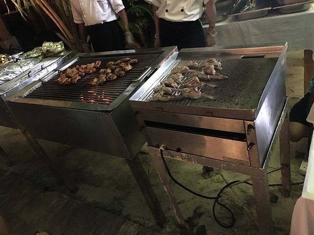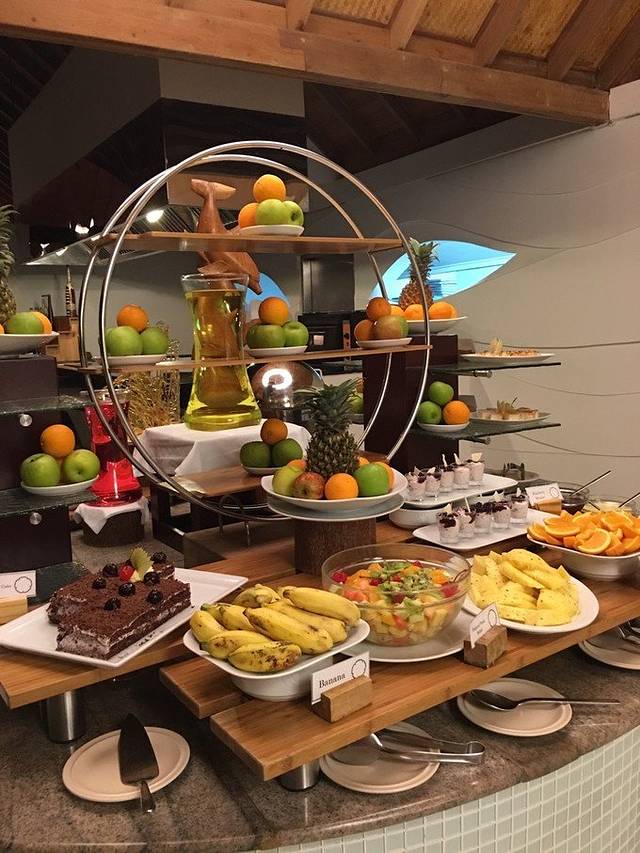 maafushivaru每天都有不同的食物主题,有pasta之夜、BBQ、world island、亚洲菜、日本菜等,一周7天主题不同,索性我们住了6晚,体会到了6种不同的主题。岛上食物非常新鲜美味。各种甜点是媳妇的最爱,每餐有一个热布丁锅放在固定地方,媳妇一定每餐都去看一看,热巧克力布丁、姜糖布丁、香蕉布丁等等,每个都尝试了一下下,以至于回国以后胖了4斤。。。