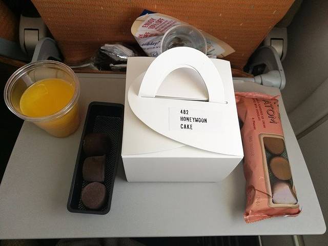新航是针对新婚夫妻有提供蜜月蛋糕的,由于行程的更改,所以在这一程航班上享受到蜜月蛋糕还是一个小小的惊喜。