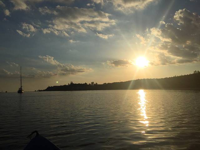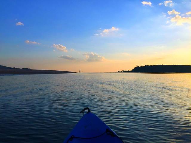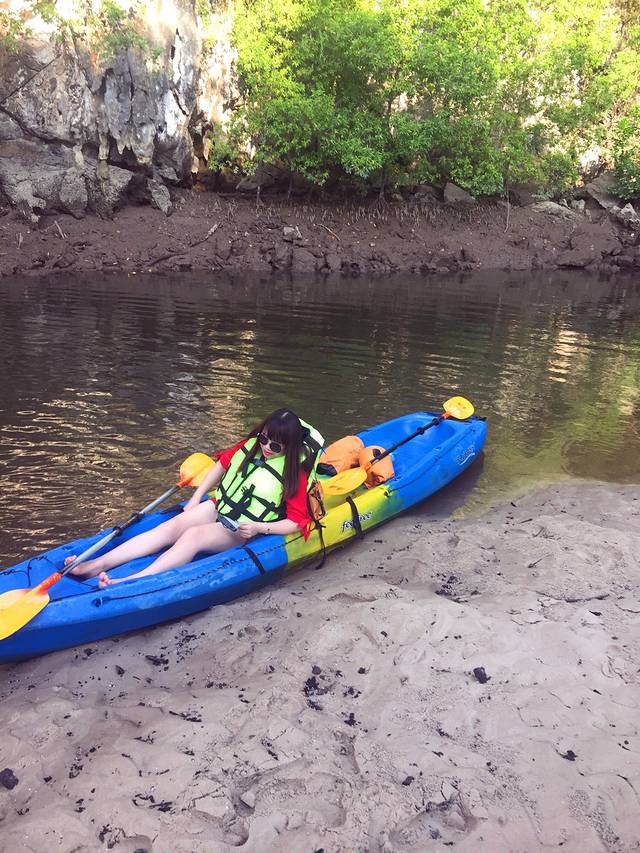 吃喝完毕就回酒店等车子来接我们去看日落,来接我们的车上已经有两个老外了,后来又接了一个中国人,开了一段路到了塔兰,穿好救身衣,脱了鞋子,每个人一艘皮划艇就出发了
