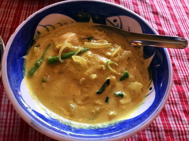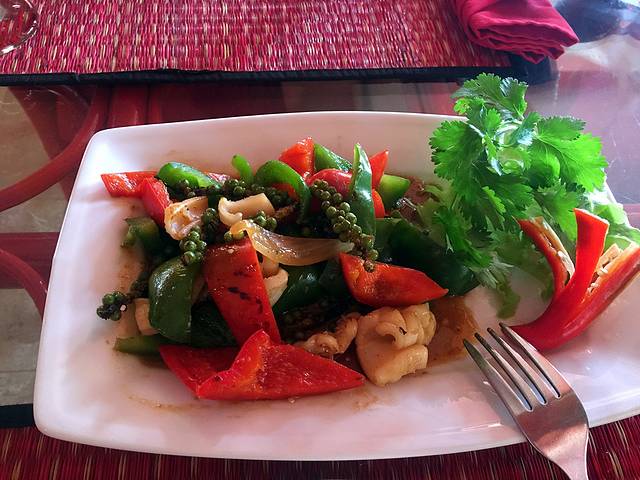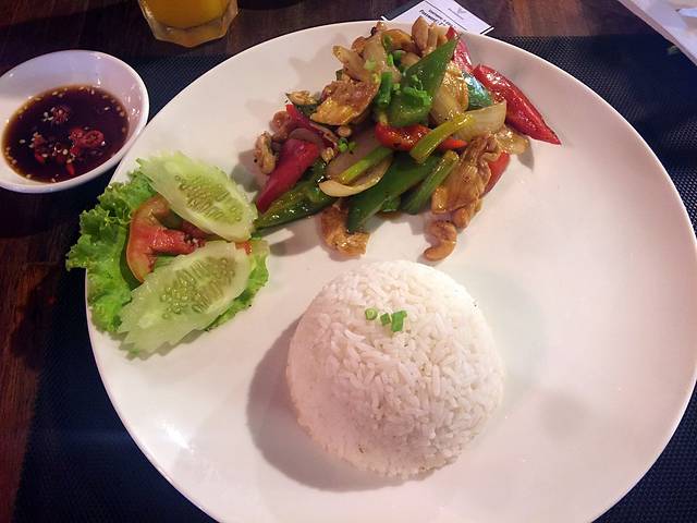 睡到自然醒,打开窗户一看天气不错,因为10月份还是柬埔寨的雨季(一般4-10月是雨季),所以我们每天最担心的还是天气。步行5分钟到老市场找了一家Khmer Kitchen Restaurant 高棉的厨房,进去坐下看了菜单,果然柬埔寨虽然穷但是物价不低啊,到底是用美金的地方,每份饭菜都是5-6刀起。