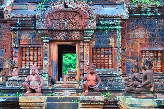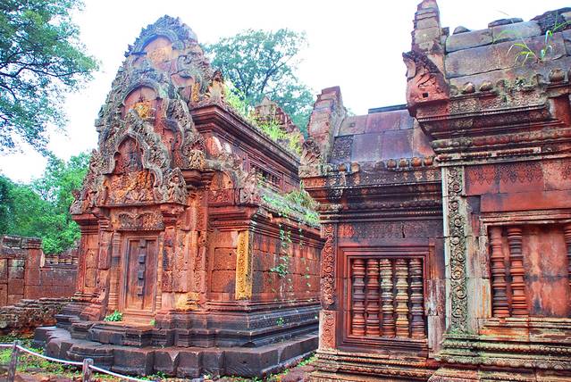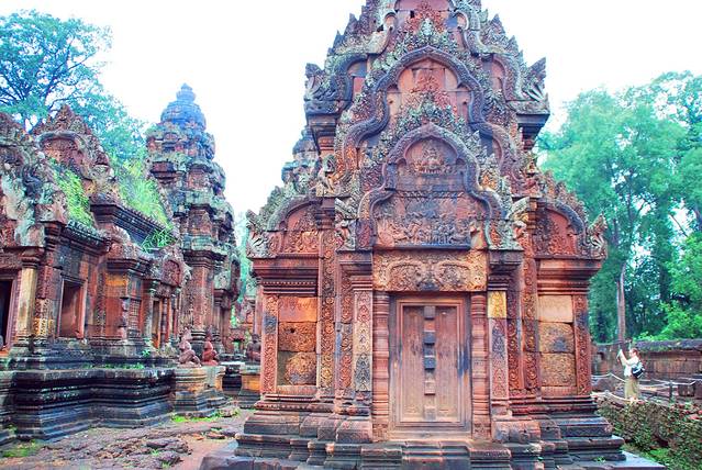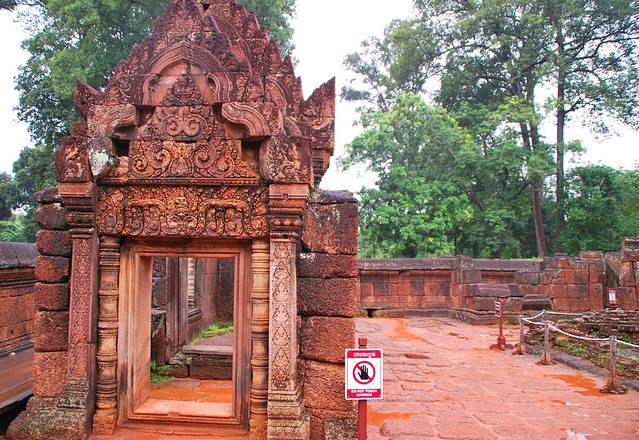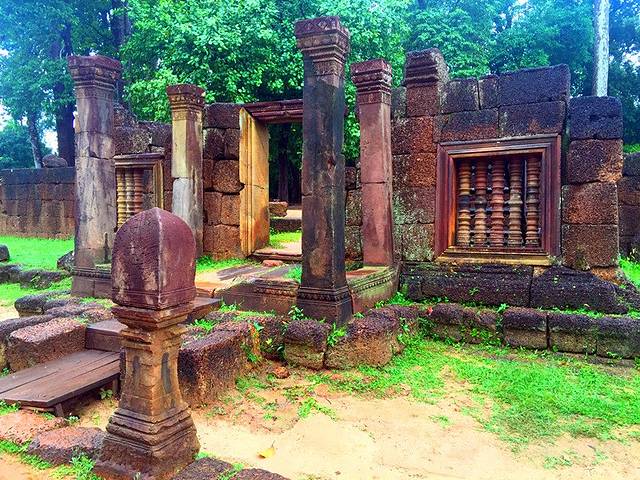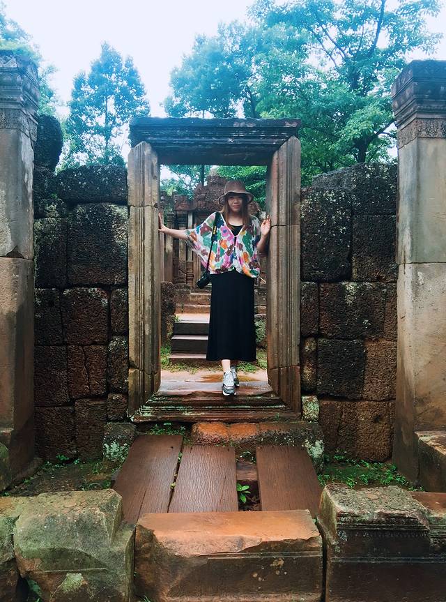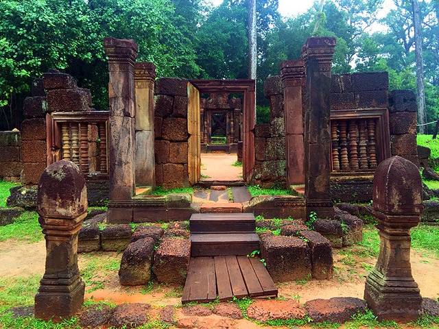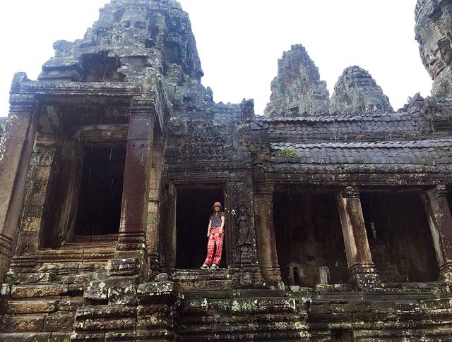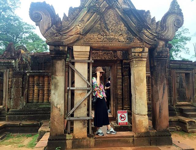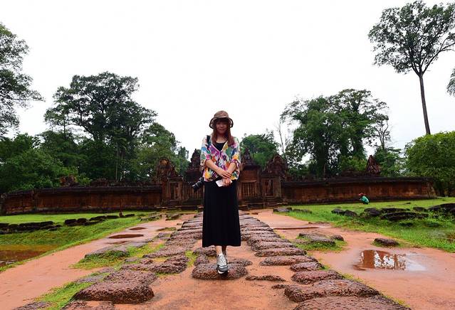 到了小吴哥,天都已经亮了,雨也下的不小,哎,今天日出肯定是没了穿着雨披进去看了一眼就出来了,直奔下一个目的地——女王宫。我们到女王宫的时候正好景区刚开门,门口好多当地小孩问我们要钱,我们觉得这样的习惯很不好,听说因为很多中国人经常给他们钱和糖果所以家长都不让他们去上学了,只出来要钱了。