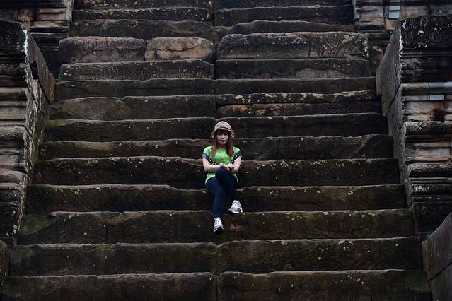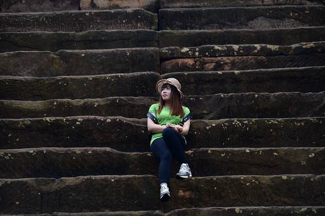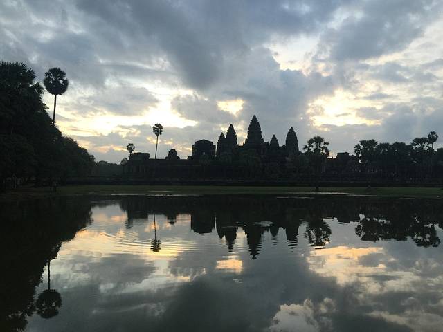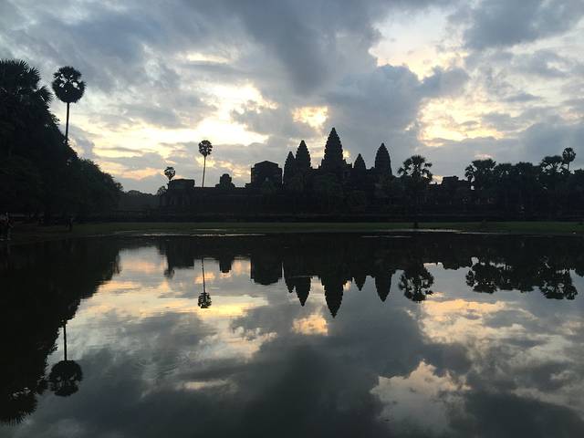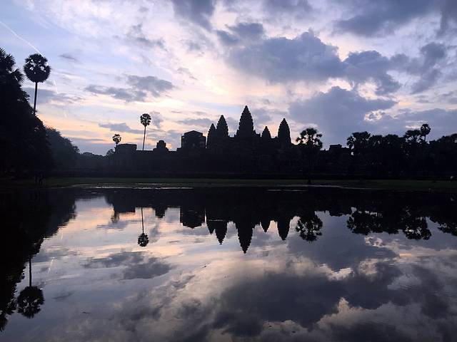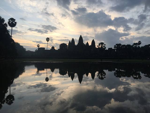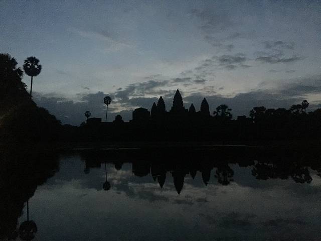 早上4点20我们准时到酒店门口,看到司机小明已经在门口等我们了,小明说他四点就来了,听了挺感动的。今天不用买票了,所以就直奔小吴哥寺了,天没有下雨,今天应该有希望吧。我们5点不到就到了门口(5点才开门)已经有不少人在门口等了,我们赶紧第一时间就冲进去了,找了最好的位置朋友开始搭三角架,人也越来越多了。天渐渐一点点亮了,可是太阳方向的云却一直不散开,看来今天又没戏了朋友挺失望的,她说跑了好多地方看了好多日出最后都没有看到。想来吴哥看日出日落的朋友们建议还是不要雨季来,当然如果你是太阳神那另当别论了。