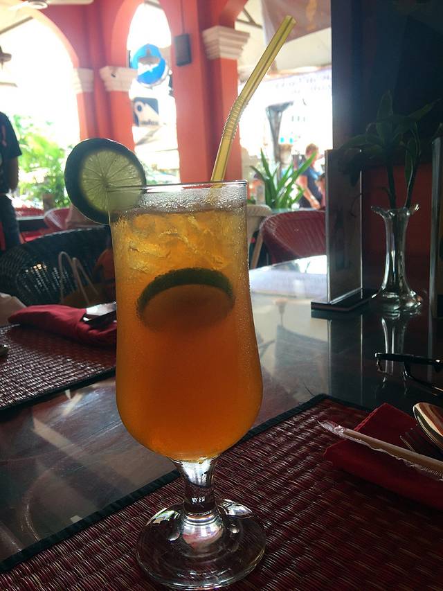 晚上去了当地很出名的红琴餐厅,因为安吉莉娅朱莉来过,还亲自调了一杯酒,就是下面我拿着的这杯。