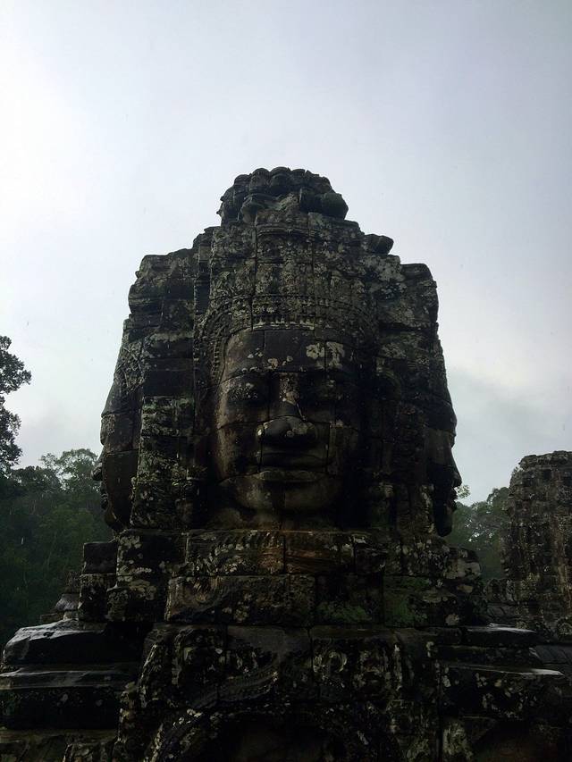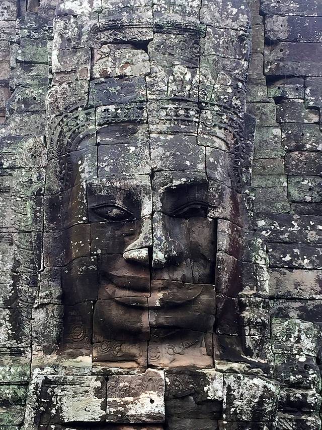 下一站是去巴戎寺,那里有最经典的“高棉的微笑”。有人说如果你想不出微笑的理由那就去吴哥窟吧,因为在那样一片战火浴血,苦难深重的土地上,还能创造出高棉的微笑这样伟大的奇迹。52尊佛塔,每一尊都在微笑,每个微笑都不一样:有的笑得含蓄,有的笑得开朗,有的笑得忧郁,有的笑得神秘。只不过,每一尊,都斑斑驳驳,镌刻着岁月的痕迹,但每一个微笑,都那么美丽纯净,动人心魄,都让你的心在刹那间停止一切躁动,变得安静而深远。