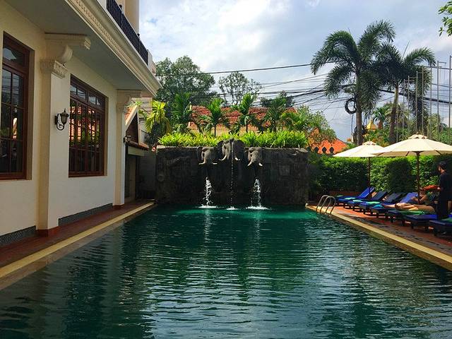 马上花了一个晚上时间定好了酒店,我一般出国旅行的酒店都在booking上定的。酒店定的是离老市场很近的一家皇家皇冠spa泳池酒店,价格很合适300多人民币一晚,有两个游泳池(但是泳池的水很深)交通也很方便,出门走五分钟就到老市场了。酒店还可以免费接机,只要在预定的时候给他们留言就好了,他们都会回复你的,看网上评论说是多晚都会在门口等你的,还蛮不错的。