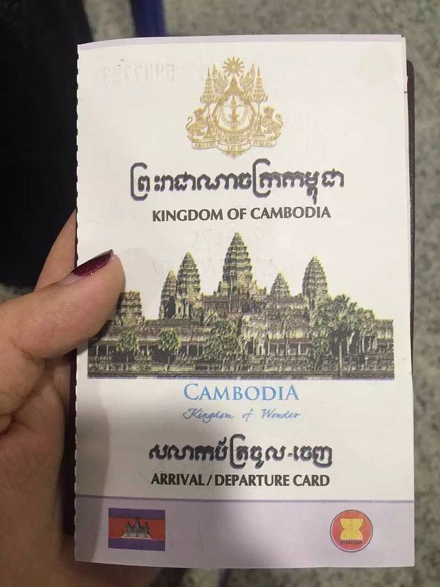 一下飞机虽然是夜晚但还是能感觉到浓浓的东南亚气息,暹粒机场叫吴哥国际机场,很小的一个机场,没几架飞机,到了大厅就看见很多人在排队办落地签,我们拿着在上海浦东机场填的资料去排队了,但是总觉得还有什么要填的,一问才知道还要去拿入境卡,两个二货赶紧去拿了填,填完又只能默默的重新排队这时候朋友突然发现应该带2寸照片的她带的是1寸的那个焦虑啊。来之前我们看攻略说暹粒机场这边要小费的情况非常严重(一般只问中国大陆游客要)果然排到我们了那黑黑的大叔伸手问我要小费,我故意装傻表示听不懂,没办法我是真没钱轮到朋友了她因为照片的事给了一刀小费,希望能顺利通过。最后我们都顺利拿到了签证。到了入境这边了,又是一位黑黑的大叔,伸手就问我要小费没办法当时后面已经没人了(一般不给的话他们会估计拖时间)我们怕酒店接我们的人等只好给了他一刀