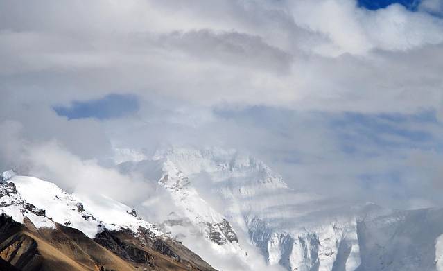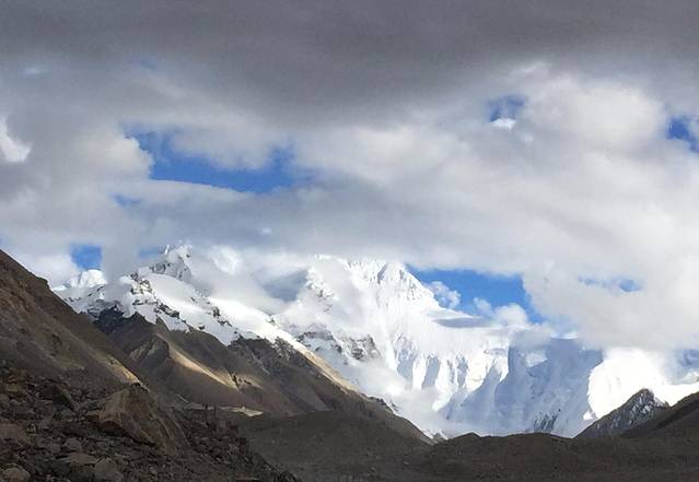 吃过晚饭出来看星星,本想着一定能看到满天繁星,但是月亮实在太亮了,挡住了大部分星星的光芒,只是觉得这里的星星比其他地方的大好多。可惜本人拍照技术和装备限制,拍不出很多星星的照片,只能拍个月亮将就看看。拍完照准备睡觉了,本人没有带睡袋,也没有氧气,就穿着棉袄靠在几块毯子上,睡了。觉得大本营的被子太脏,只好就盖着脚。睡的迷迷糊糊一直都觉得冷飕飕的,氧气倒是没有想象的稀薄,呼吸还挺舒服的,就是冷,帐篷的门也一直没有关,后来说是因为都封闭的话氧气更少,更容易高反。第二天早上起来天灰蒙蒙的都是雾气什么都看不见。7点我们就出发回日喀则了,又是坐一天的车,又是绕的想吐的山路