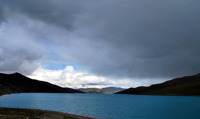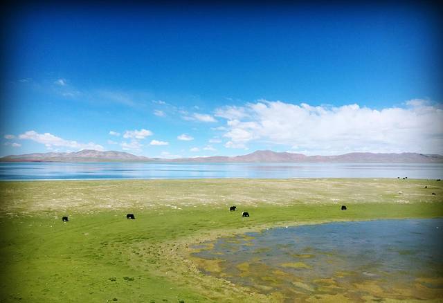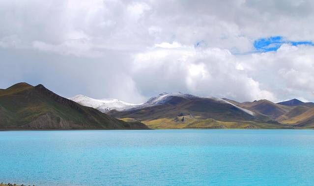 羊湖的颜色简直了,头上的云快点走啊
