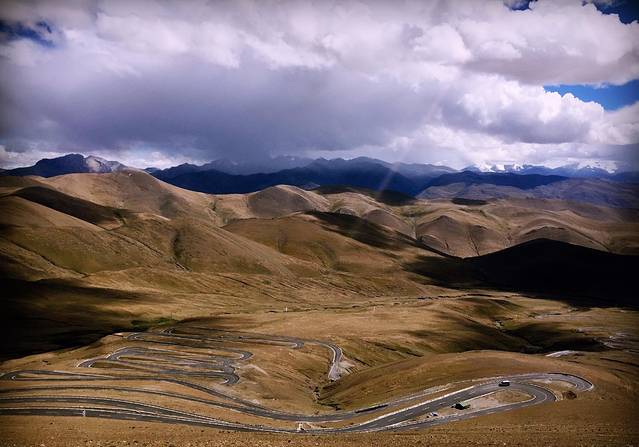 随后我们就一路往珠峰大本营去,这一段都是山路,感觉司机师傅真的很辛苦,这段路真的很难开。一路绕到山顶再绕下去,所以有点晕车的亲们一定要吃晕车药。远处绵延起伏的雪山就是喜马拉雅山脉啦。兴奋呐
