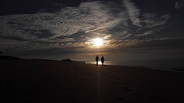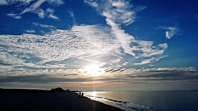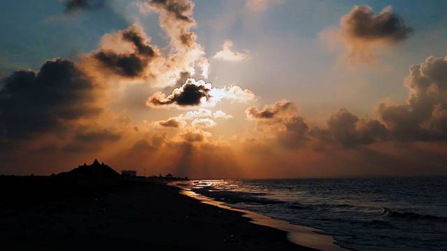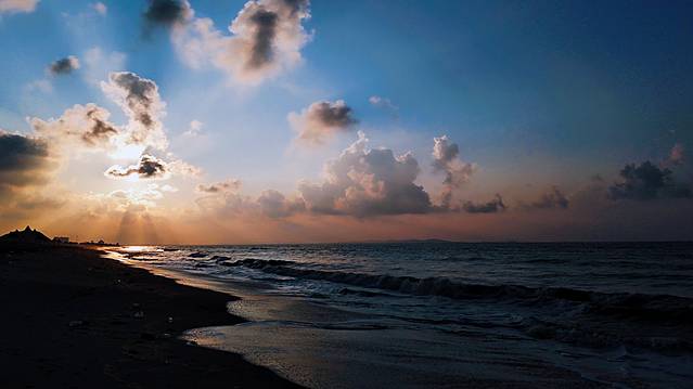 海的落日一样好看,傍晚,看晚霞,看沙滩上支起的营帐,转海鲜大排档....
