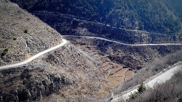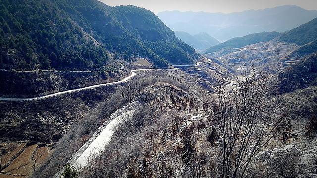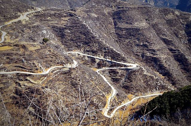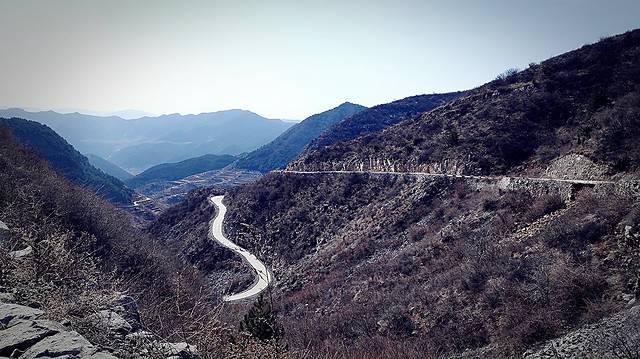 看着山谷间蜿蜒的的公路,不知还有多远能到岳家寨,也不知当时自己的方位,手机完全没了信号,和北京的朋友联系希望能指引方向,结果手机也打不通了。难怪后来看到提示进入太行山深处一定要事先做好功课,要把地图下载使用。已经是下午2点多钟,我们决定到此为止,果断返回,经虹梯关村返回平顺县。
