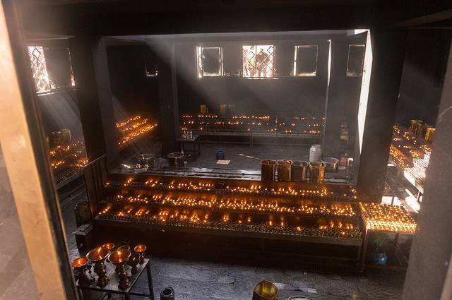 大昭寺门前的广场,是最好的地方,无数信众顺时针绕着大昭寺转经,几百个当地人无休无尽的磕着长头,蜡烛房里星星点点的酥油灯也永远不会熄灭。