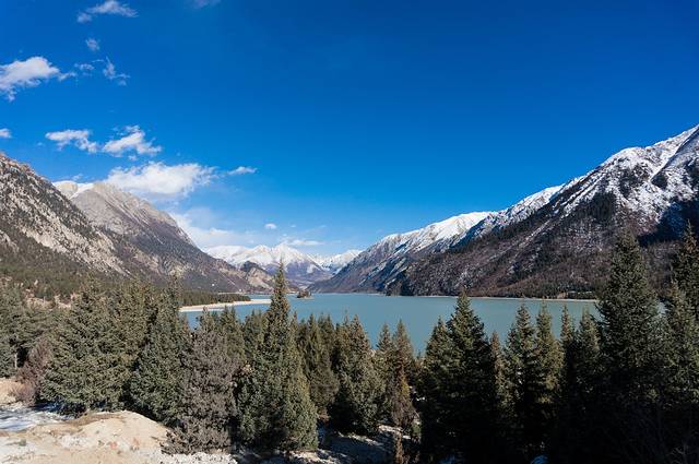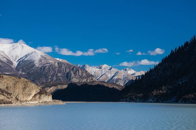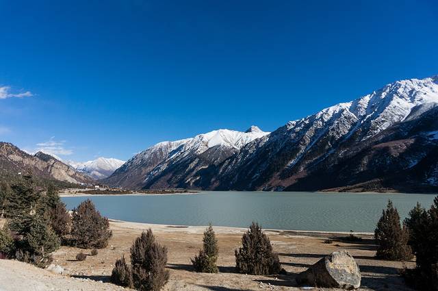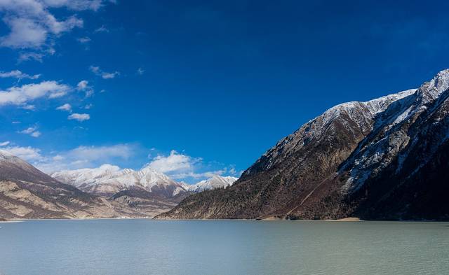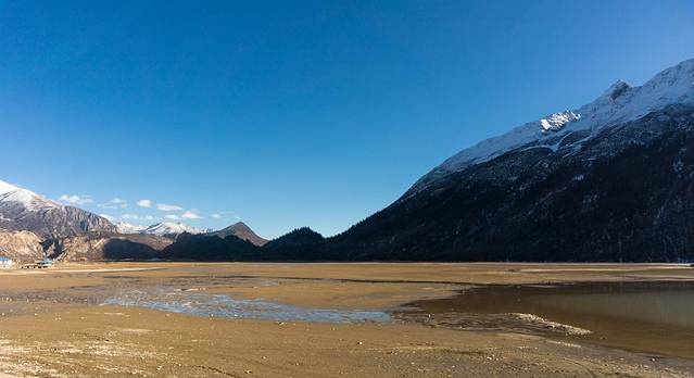 然乌湖是本次行程中非常重要的一个地方,还未到然乌湖的时候,我就和司机打了招呼,希望他能在湖边停留一阵子。冬季的然乌湖水稍有些浑浊,泛着灰蓝的色泽,山后的雪山不高,也足够梦幻,司机在这里停了将近十五分钟让我们拍照。而我们甚至都不想走了。