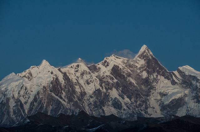 半小时后,远处的云慢慢散开,出现连绵的雪山带,群山之中,一眼就看到远处的贡嘎,仔细算算,贡嘎大概是最青睐我的雪山了吧,这已经是第三次见到他,就像是一个孤傲的国王一样耸立在云海之上。