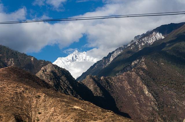 4. 过贡嘎雪山之后,南迦巴瓦仍然在左手边,注意观察尖顶的雪山。