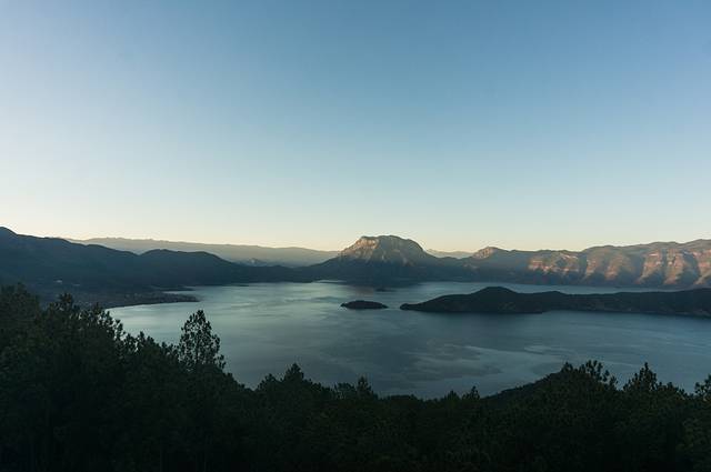 7小时之后,我们总算是到了泸沽湖,虽然一路上风景看的有些除却巫山不是云,但初见泸沽湖时,我们还是被那一片蓝宝石样的水面惊艳到了。