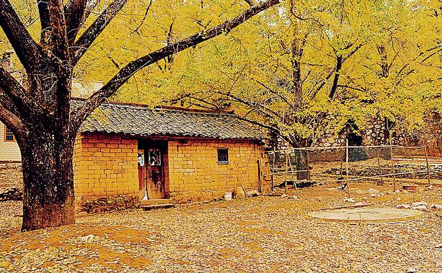 这次出行的路线是:第一站海洋乡大桐木湾村,看银杏树,状元楼,太平缸,栓马石,千年古井,千年白果王;第二站到九连,看千年银杏皇后。不过瘾,又翻山越岭开车3小时去了小平乐画眉弄银杏摄影基地,一次把美丽尽收眼底。