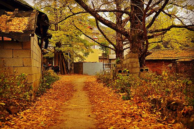 海洋乡位于距桂林市40公里的灵川县,海洋乡是银杏种植保护区,广西主要白果产地。海洋乡共有银杏近百万株,其中百年以上的银杏就有1.7万株,是世界上人均占有银杏树最多的地方,被誉为“中国银杏第一乡”。每到深秋,满乡的银杏树在秋日的阳光中绽放着金色,就像灰姑娘褪去了一身的尘埃,瞬间变得光彩照人。但这些美丽是暂时的,只能维持2-3周,所以“垂涎已久“的我当然不愿错过这个机会。