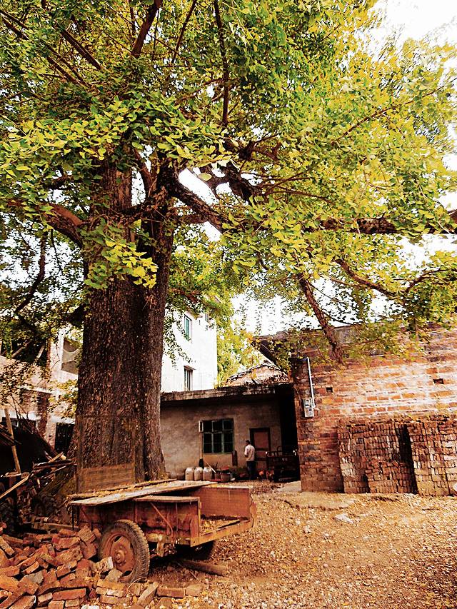 从大小桐木湾村出来开车一路走一路问,沿小道七拐八拐,30分钟后到达九连村,主要为一睹千年银杏皇后。但这里的保护措施尽失。