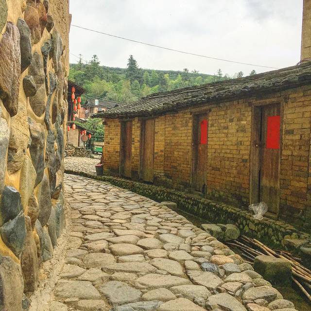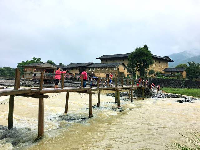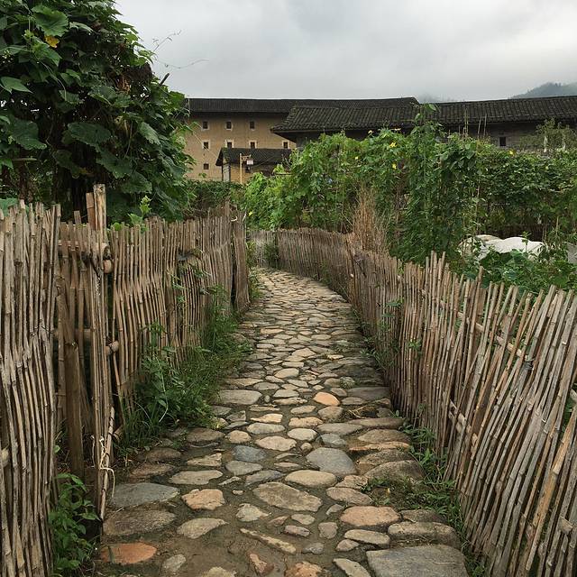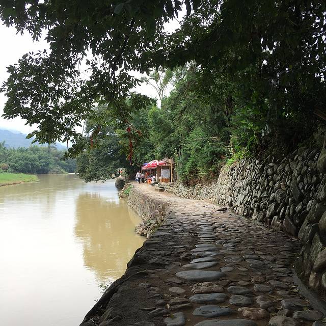 参观完云水谣古镇,折返至河对面,沿着河边的鹅软石路面一直走,大约1公里左右就是南靖土楼中最负盛名的怀远楼了。